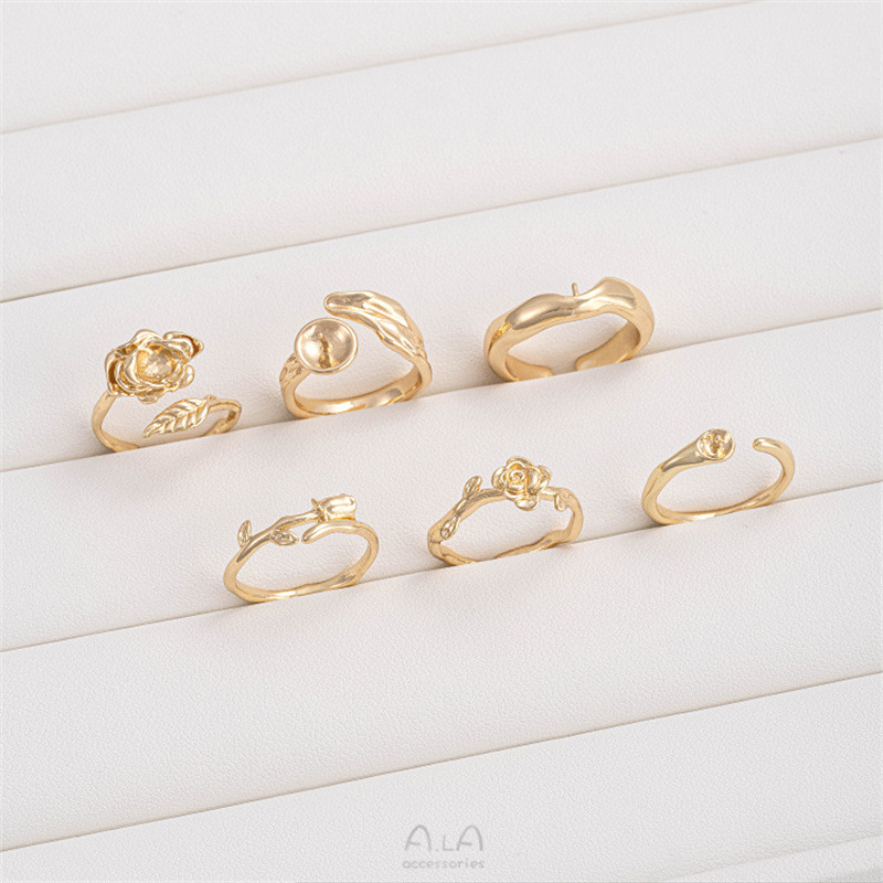 14K Gold Color-preserving Rose Tulip Abstract Leaf Pearl Ring DIY Handmade Sticky Pearl Hand-made Accessories