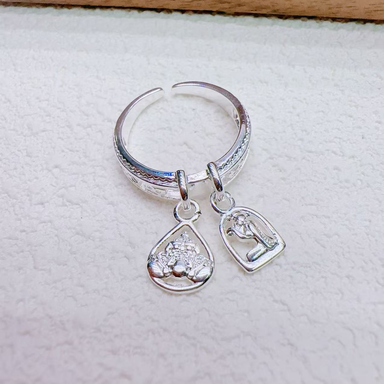 Thai Buddha Amulet Laha Beckoning Goddess Ring Exquisite Versatile Simple Ins Style Fashion Couple Ring DIY Accessory