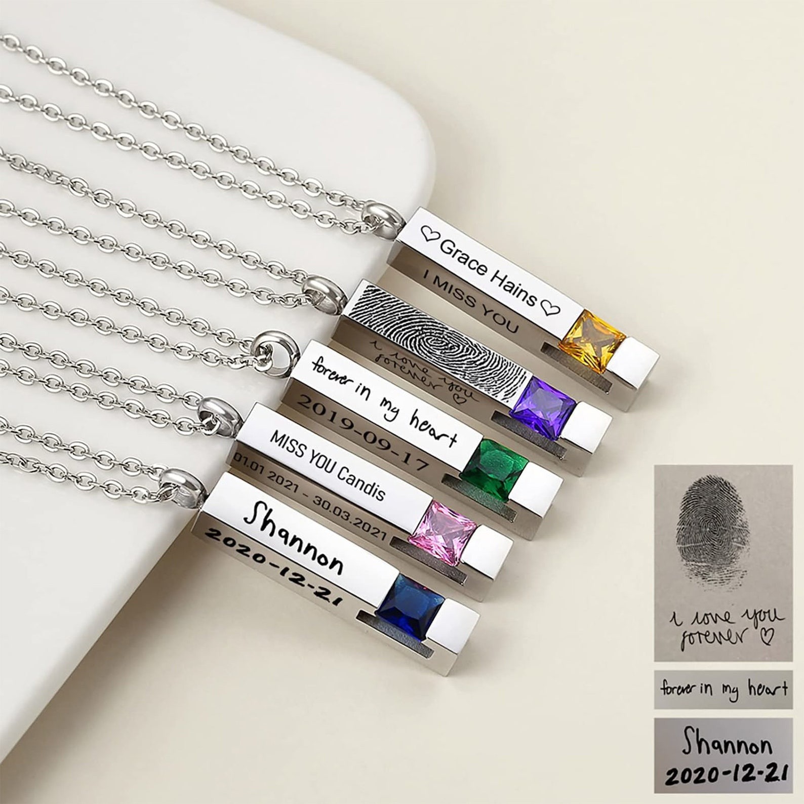 Cross-Border Customized Fashionable Stainless Steel Ashes Necklace Square Column Birthday Stone Pendant Can Open Perfume Bottle Ashes Jar