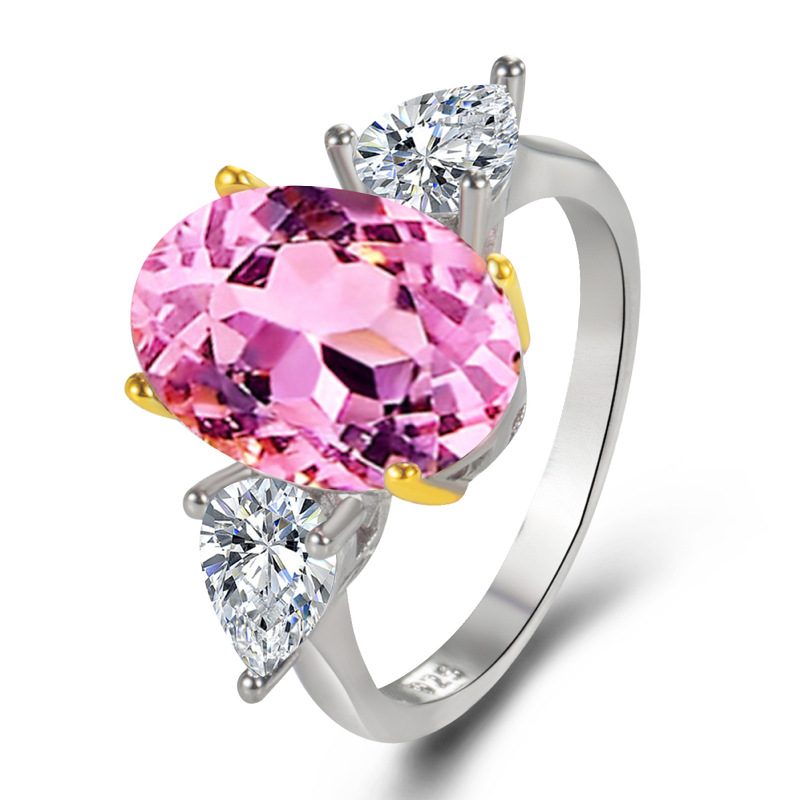 Platinum-plated gold two-color inlaid high carbon diamond oval diamond ring imported gemstone diamond pink yellow and white diamond ring