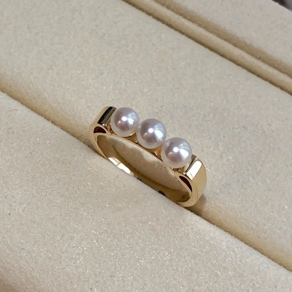 M Family Same Style Ring Japan Three Natural Freshwater Pearls Daily Classic Simple 925 Silver Ring