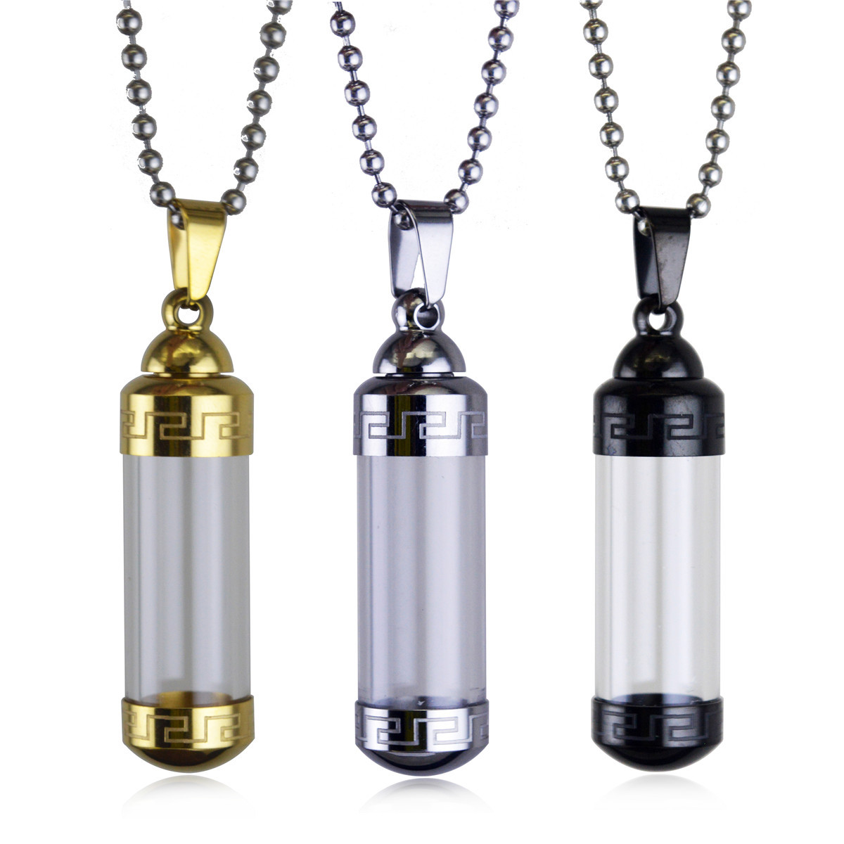 Jewelry wholesale can open perfume bottle titanium steel pendant transparent bottle necklace foreign trade personality hanging accessories BN1588