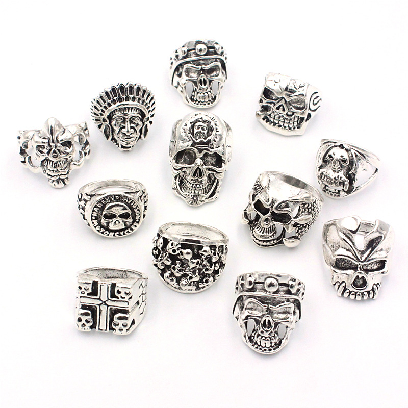 Europe and the United States hot vintage ring wholesale alloy skull ring ring multi-style mixed hair AliExpress supply