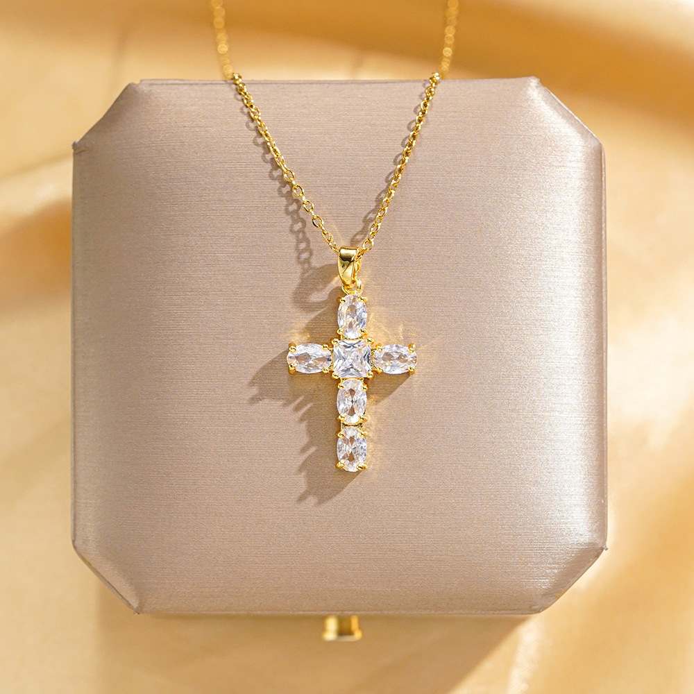 Titanium Steel Simple Zircon Cross Necklace Female Internet Celebrity Fashion Versatile Clavicle Chain Real Gold Plating High-End Jewelry