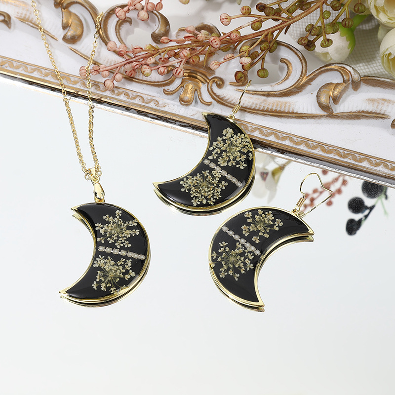 Cross-Border European and American Retro Style Women's Moon Necklace Fashion Glue Artificial Small Floral Crescent Earrings Necklace Customization
