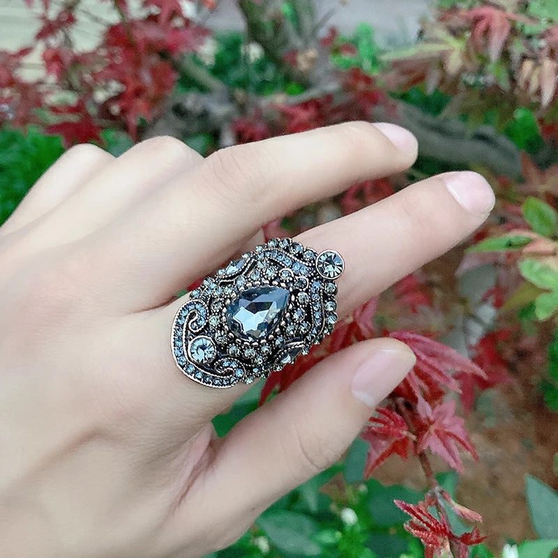 Europe and the United States retro national wind gray drill water drop ring Yiwu source manufacturers supply [support a generation of hair]]