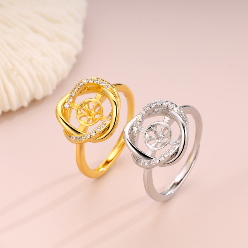 Bow Ring Empty Holder DIY Inlaid Round Ss29 Huazi Diamond Personalized High-End Adjustable Ring Holder Ring