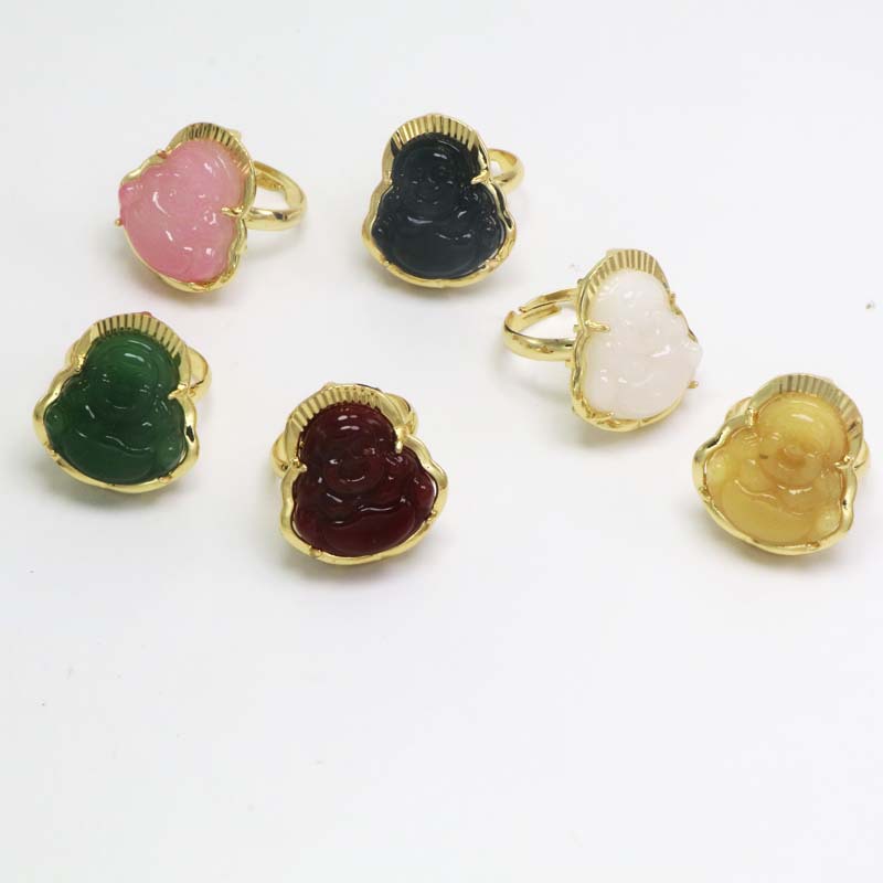 Amazon Cross-border Big Belly Maitreya Ring Simple Buddha Copper Plated 18K Gold Inlaid Jade Opening Ring Bracelet for Women