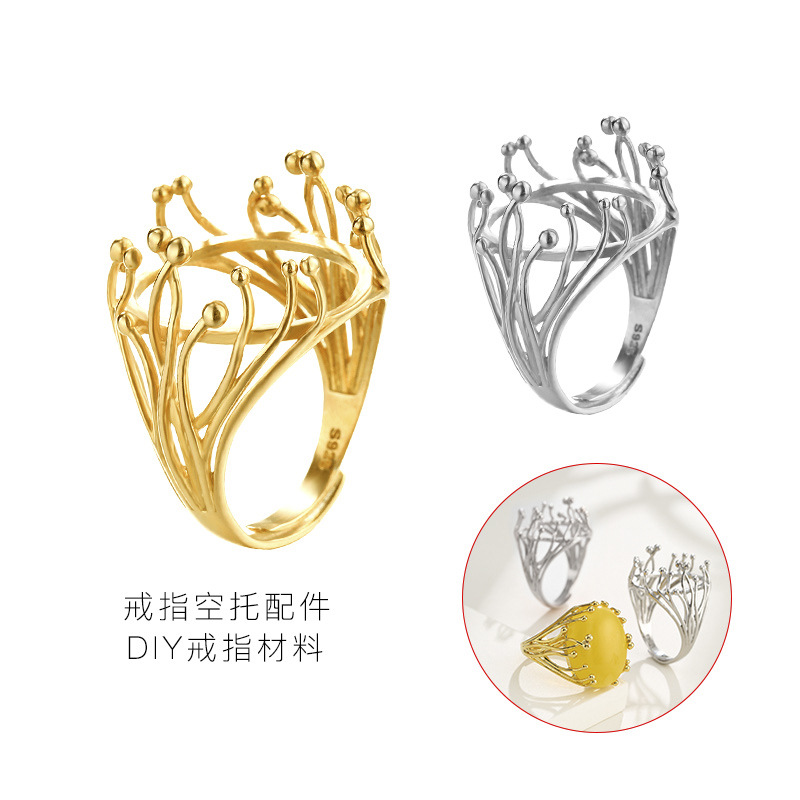 Qunlvsheng S925 sterling silver baroque style half ring all-matching diy hand-woven texture semi-finished accessories C