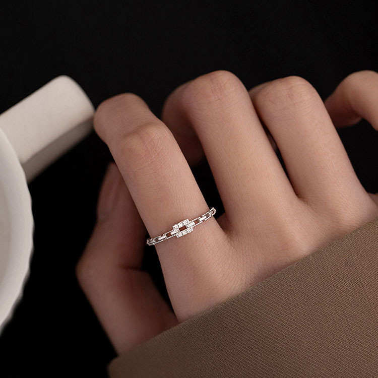 Sunrise Flash Diamond Chain Ring Women's Opening Adjustable Simple Niche Design ins Cold Style Light Luxury Square Diamond Ring