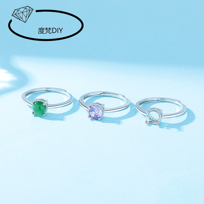 White Gold Fashion Simple Women's Ring Empty Holder Copper Ring Holder DIY Four-Claw Inlaid Jade Huazi Diamond High Imitation 925 Silver