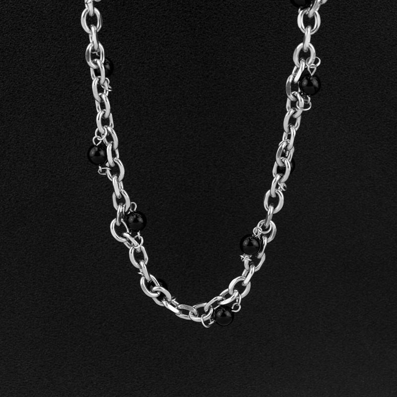 National fashion neutral style ins titanium steel necklace female black agate handmade clavicle chain niche ins hip hop punk male fashion brand
