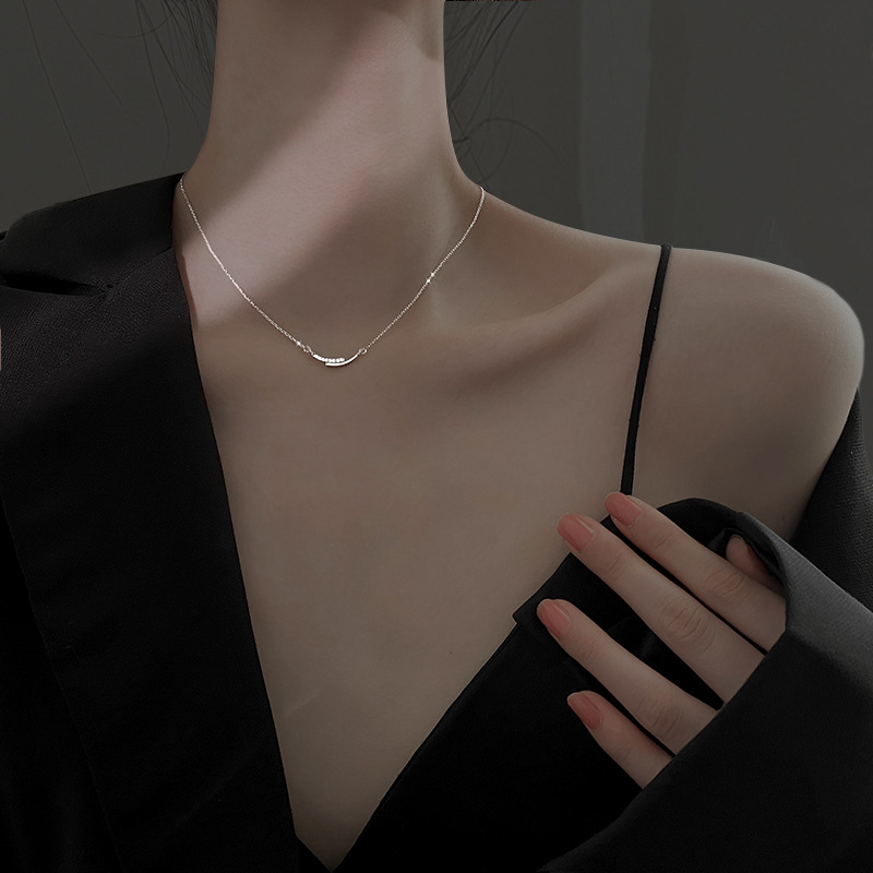 Double-layer curved diamond-embedded smile necklace women's simple exquisite high-end sense niche design sense all-match clavicle chain necklace