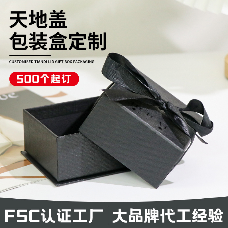 Black Bow Heaven and Earth Cover Gift Box Custom Special Paper Hot Black Gold Gift Packaging Box Advanced Sense Handmade Carton