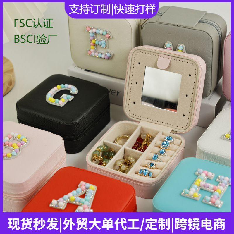 National tide earring necklace ring storage jewelry 26 letter box mirror jewelry box travel jewelry storage box wholesale