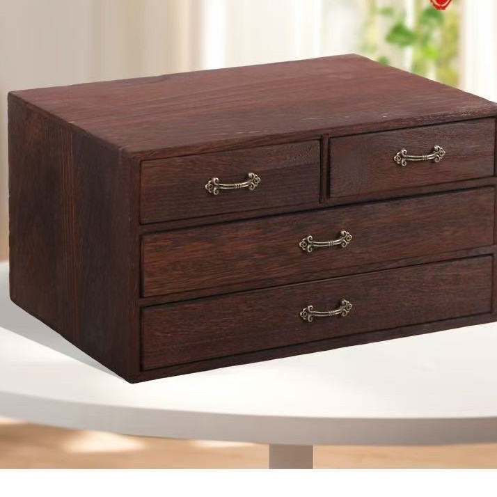 Retro wooden storage box pull-out storage cabinet desktop multi-layer jewelry storage storage storage box