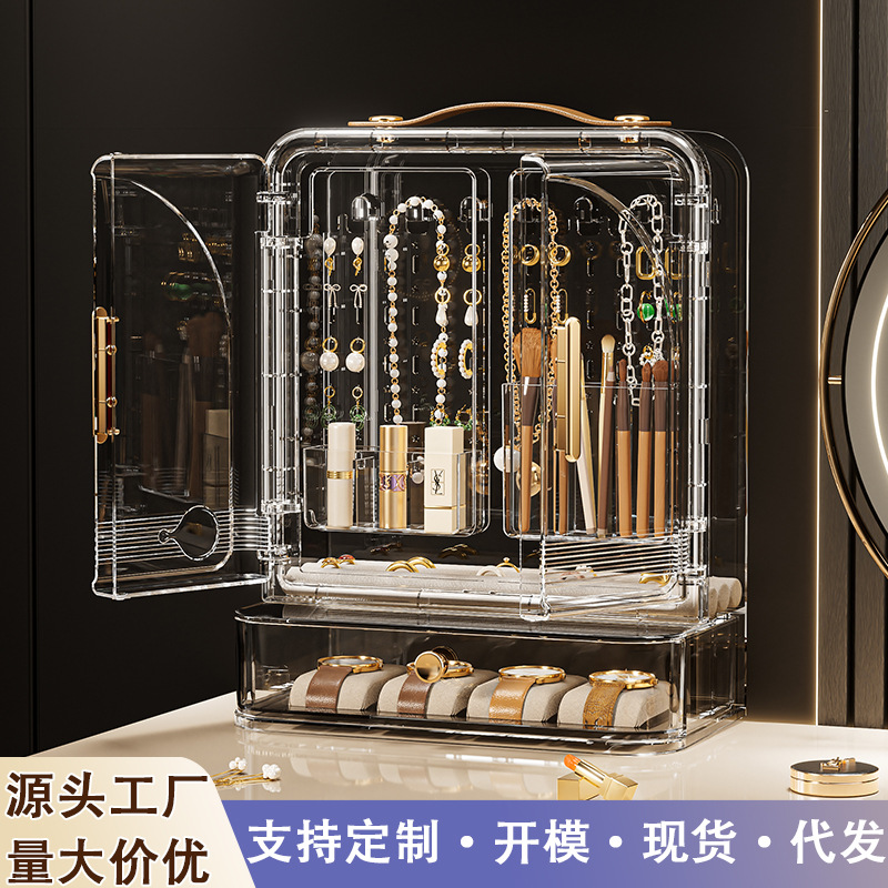Jewelry Storage Box, High-End, Portable, Large-Capacity Earrings, Rings, Household Makeup Brushes, Lipstick Storage Racks, Jewelry