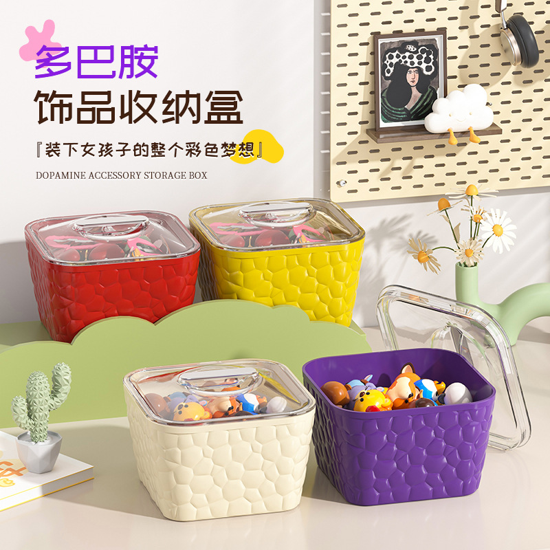 Dopamine Desktop Storage Box Hair Accessories Hand Jewelry Box with Lid Hair Band Hair Rope Hairpin Jewelry Transparent Storage Box Wholesale