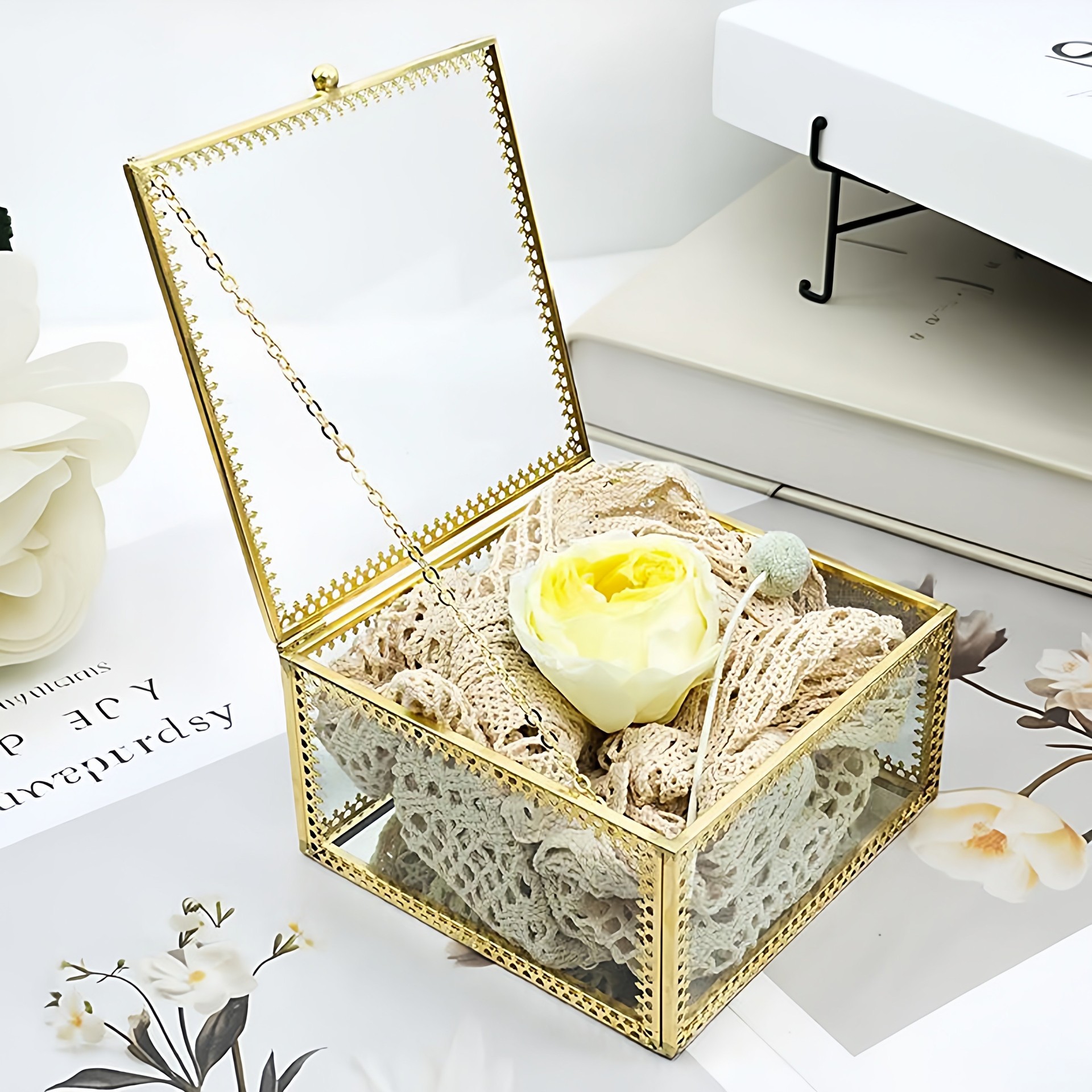 Jewelry box jewelry ring cosmetics wholesale desktop transparent glass copper gold frame storage box