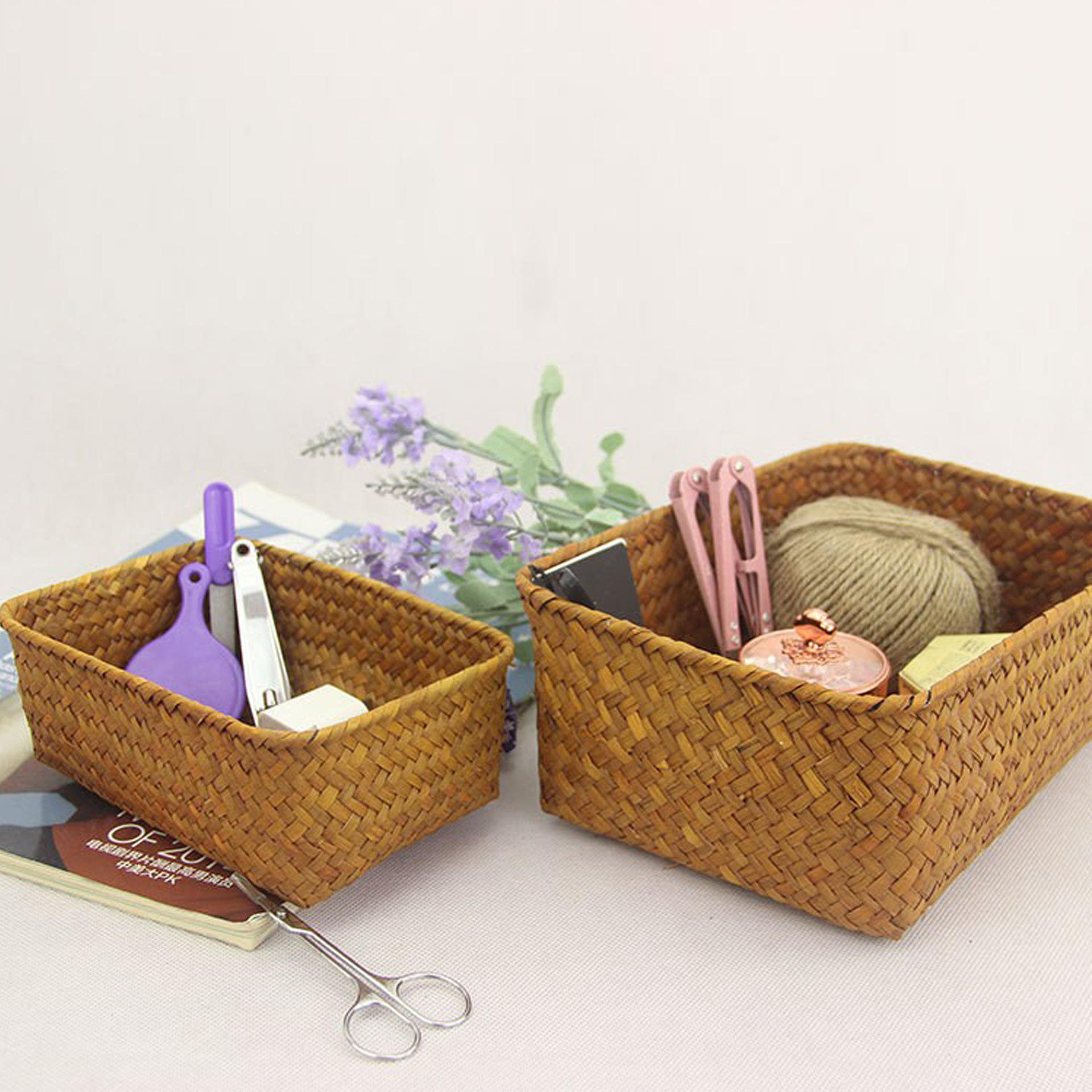 Handmade Creative Folk Seagrass Woven Household Sundries Finishing Display Decoration Vintage Crafts Storage Box