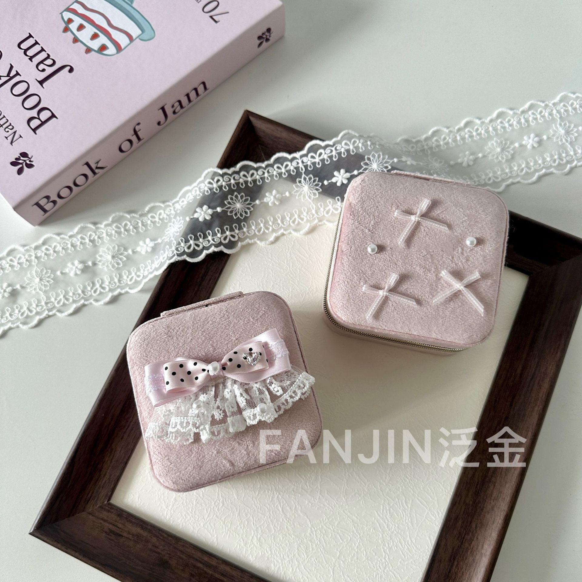 Original Hand-made Bow Skirt Girly Velvet High-grade Storage Box Jewelry Desktop Jewelry Box Zipper Partition
