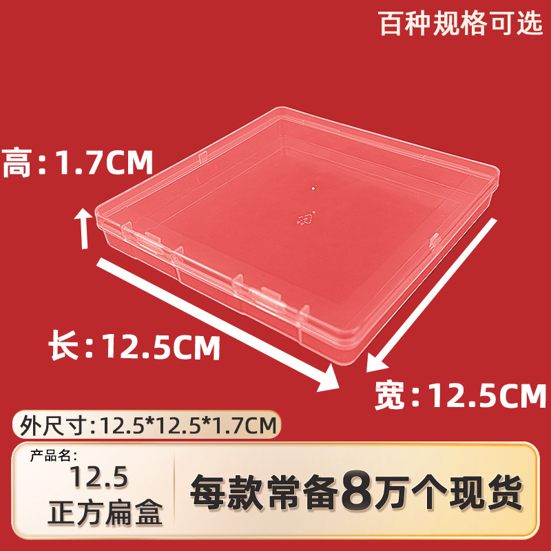 12.5 Square Flat Box Square PP Plastic Box Transparent Packaging Box with Lid Desktop Jewelry Storage Box