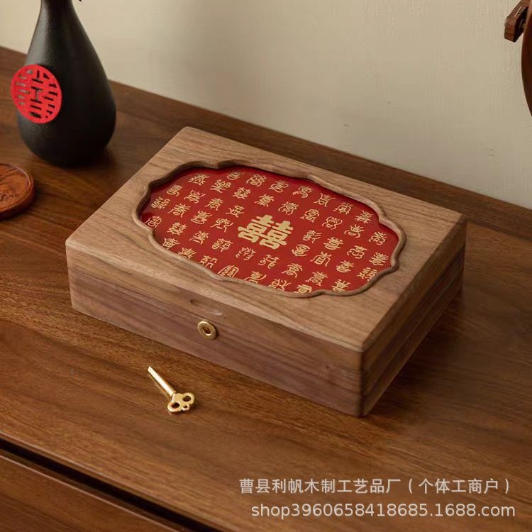 Chinese Wedding Jewelry Box Walnut Video Jewelry Storage Box Earrings Bracelet Storage Box Wedding Gift Wooden Box