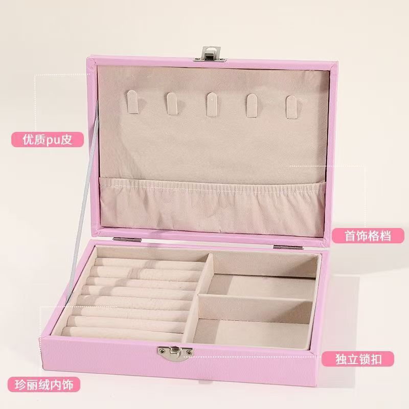 Single-Layer Jewelry Box Storage Box for Rings, Necklaces, and Jewelry with Lock, Pu Leather Jewelry Storage Box