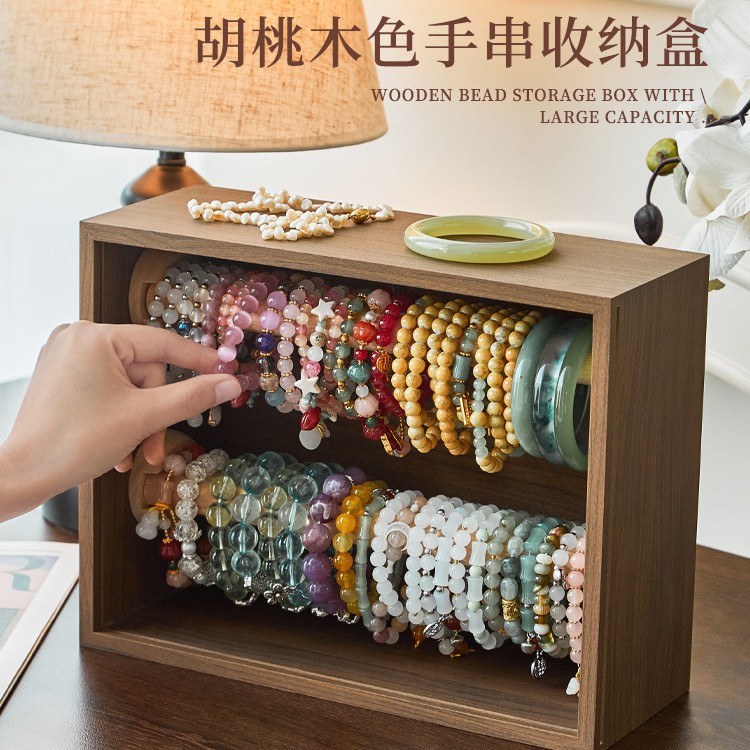 Desktop Large-Capacity Solid Wood Bracelet Walnut Light Luxury High-End Niche Retro Jewelry Storage Box Double Layer