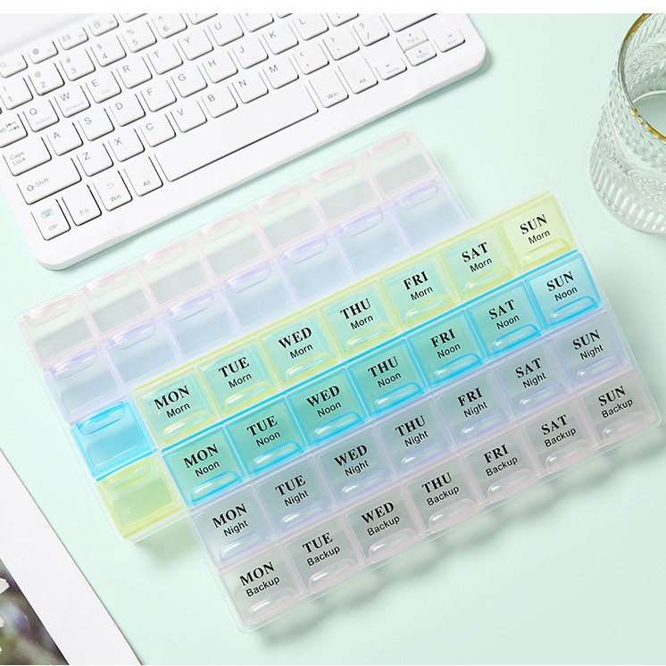 Transparent 7-Day 4-Row Weekly Pill Box 28-Compartment Pill Box Medicine Dispensing Box Jewelry 3-Row 21-Compartment Storage Box Pill Box