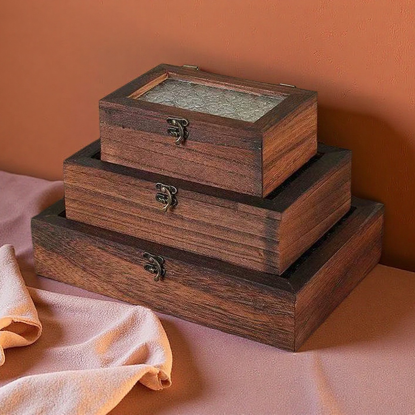 Wooden Box Storage Box Retro Desktop Multi-Functional Sundry Storage Box with Lid Wooden Flip-Top Jewelry Storage Wooden Box