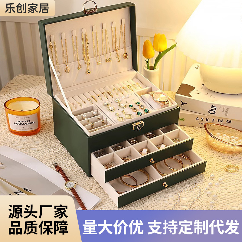 Household High-grade Ring Earrings Necklace Bracelet Jewelry Box Drawer Type Dust-proof and Oxidation-proof Large Capacity Storage Box