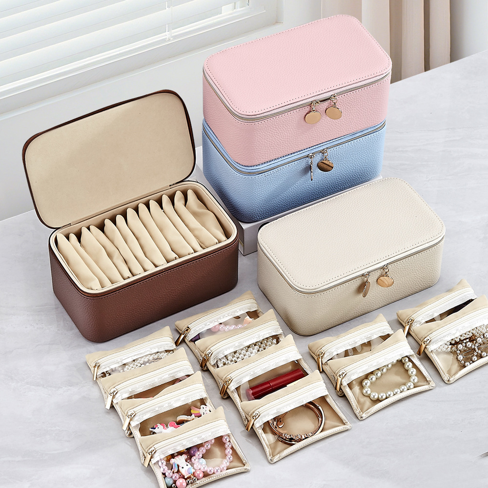 Korean-Style Zipper Jewelry Box, Simple Design with 12 Compartments for Storing Earrings, Rings, Necklaces, and Other Accessories for Women