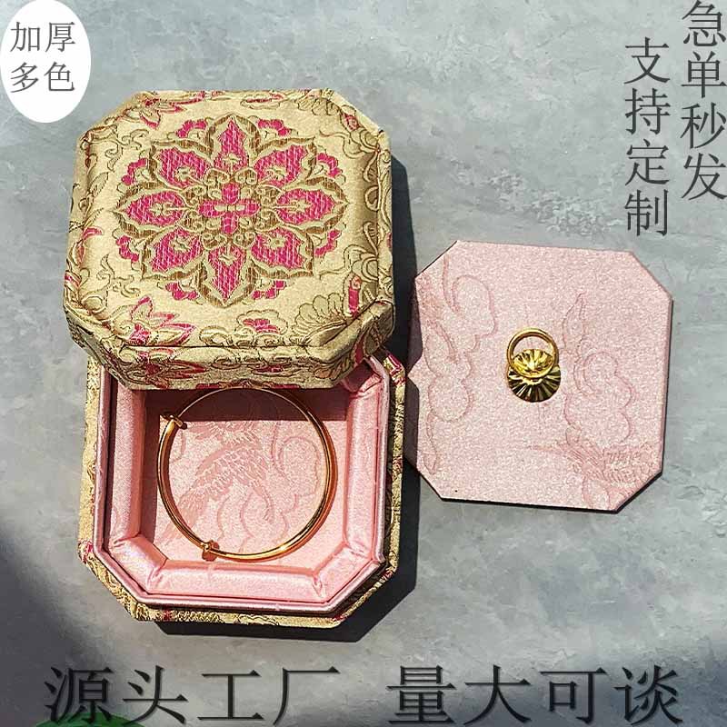 Octagonal Silk Cloth Box Wedding Jewelry Box Red Bracelet Storage Bracelet Box Antique-Style Brocade Jewelry Box