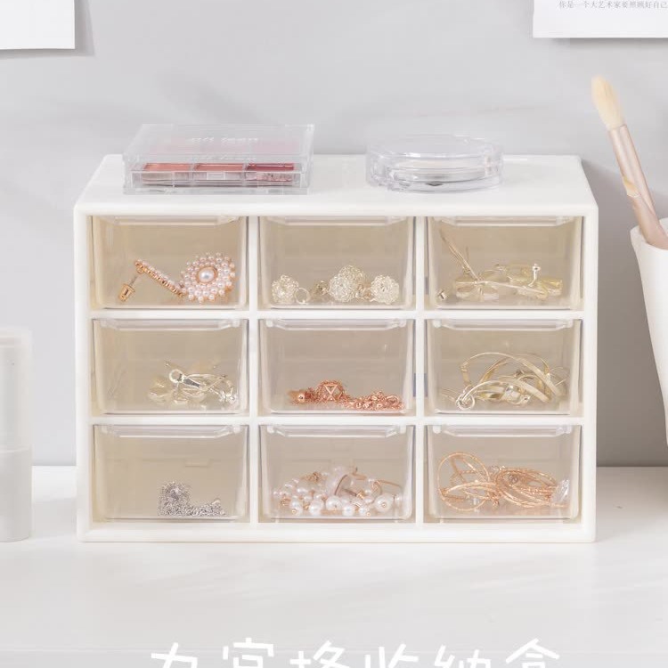ins College Students' Dormitory Dust-proof Jiugongge Small Drawer Jewelry Storage Box Dormitory Desktop Stationery Jewelry Hand Account