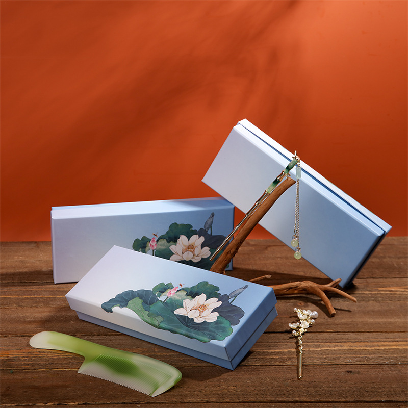 Customized Lotus Bird Jewelry Box, Ancient Style Hair Comb Packaging Box, National Style Pendant Hairpin Packaging Box, Heaven and Earth Cover Packaging Box