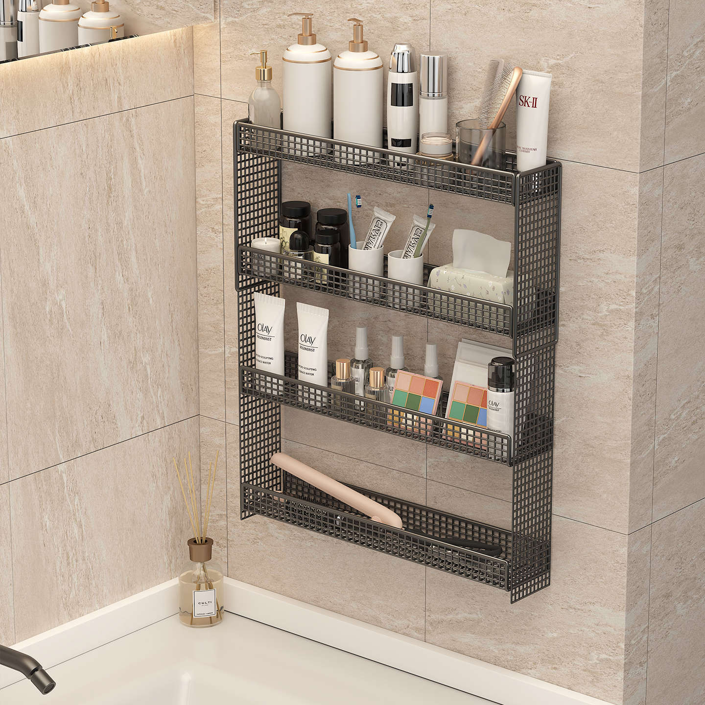 Cosmetics Storage Box Wall-Mounted Dressing Table Multi-Layer Punch-Free Storage Rack Lipstick Ultra-Narrow Skin Care Product Display Rack