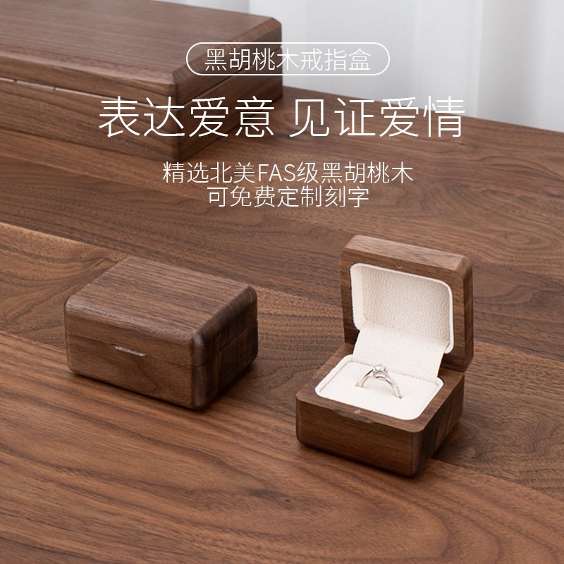Black Walnut Wooden Ring Box Jewelry Storage Box Solid Wood Exquisite Jewelry Box Valentine's Day Gift Proposal High-End