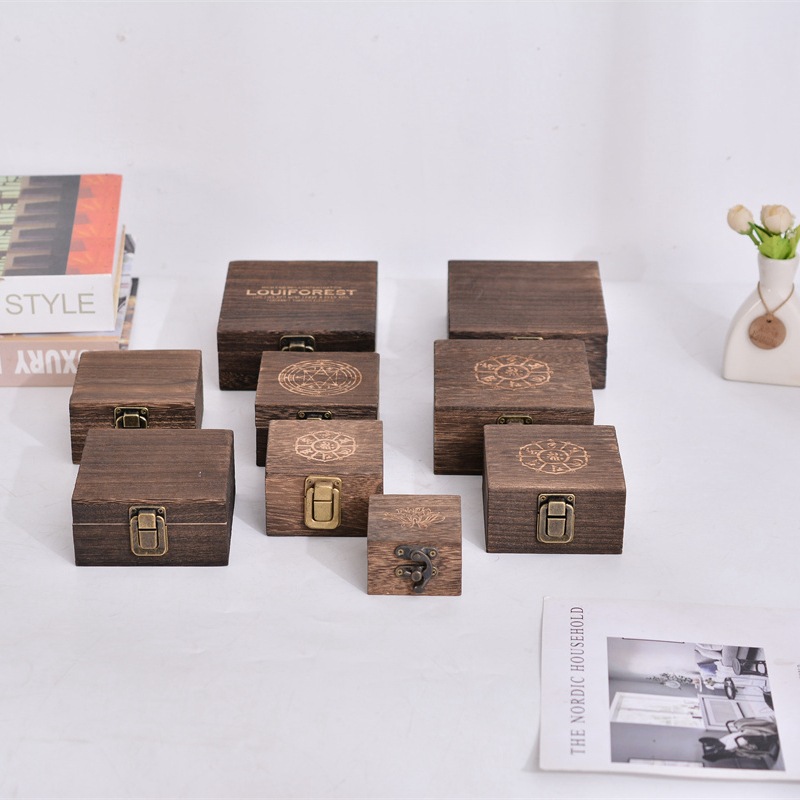 Vintage Paulownia Wood Charcoal Burnt Storage Box with Lid and Lock for Jewelry and Cultural Artifacts, Flip-Top Gift Box with Lock