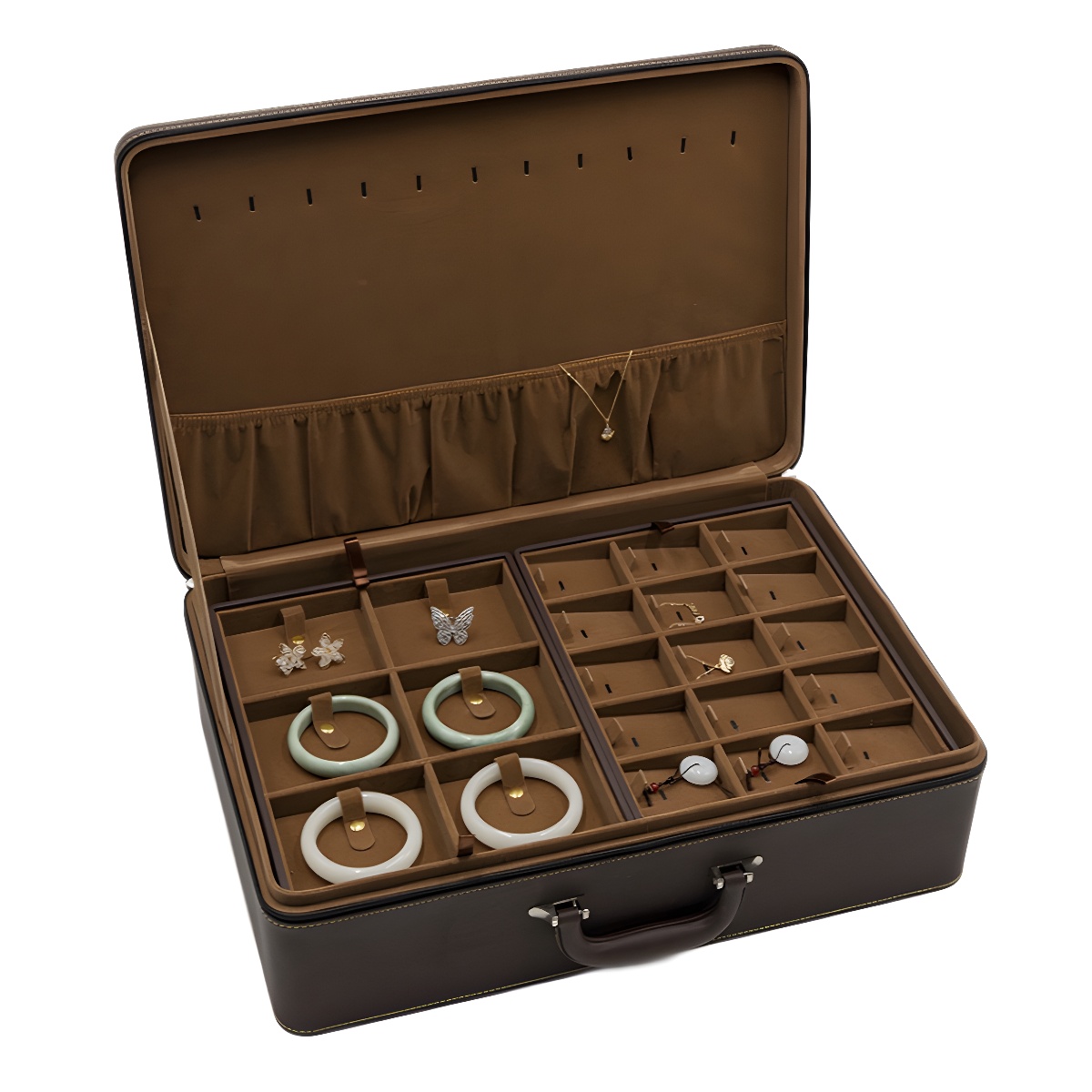 High-grade PU leather jewelry storage box ring necklace multi-layer storage suitcase pendant display storage box