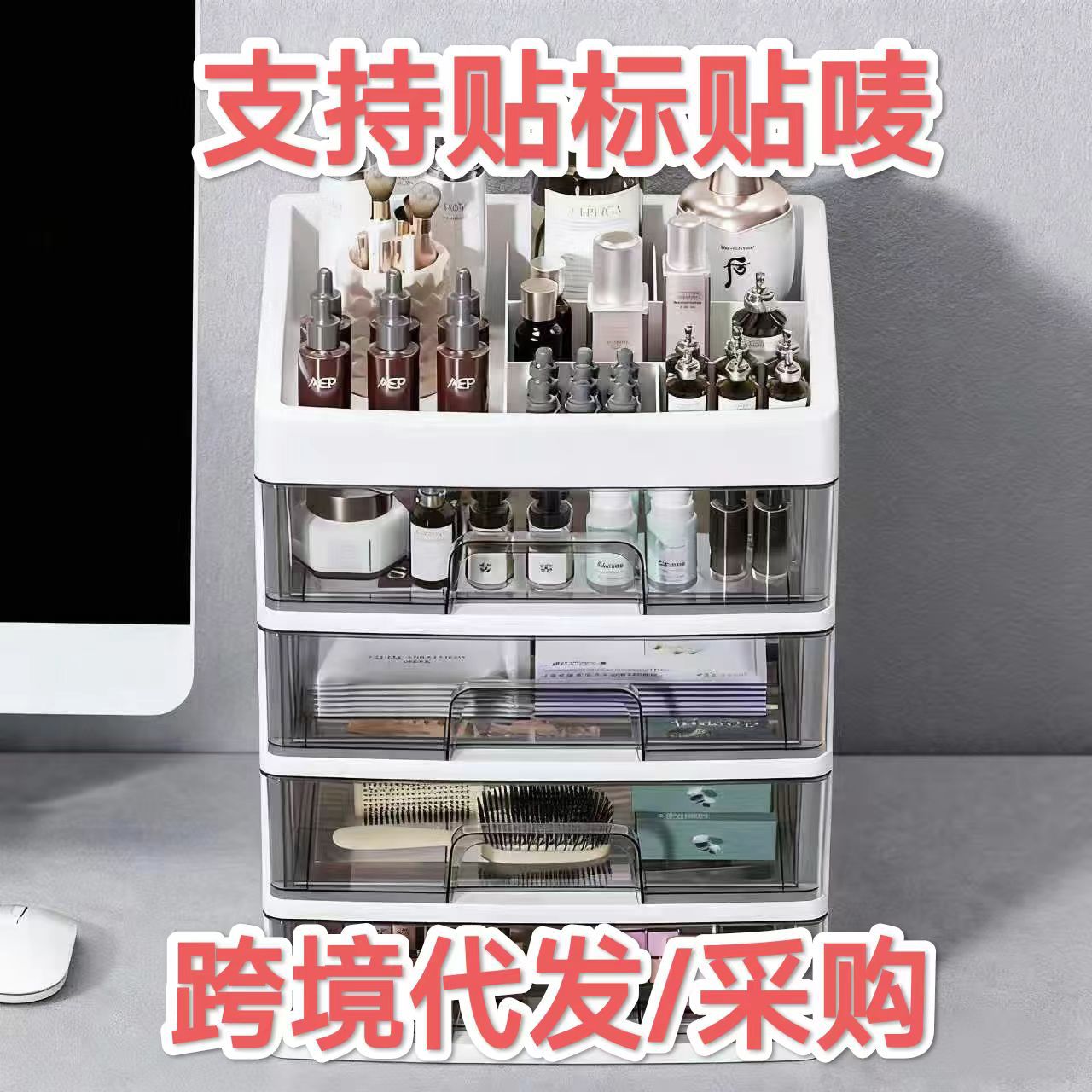 Aliexpress Amazon Hot Selling Transparent Cosmetic Storage Box Drawer Type Desktop Storage Rack Jewelry Organizing Box