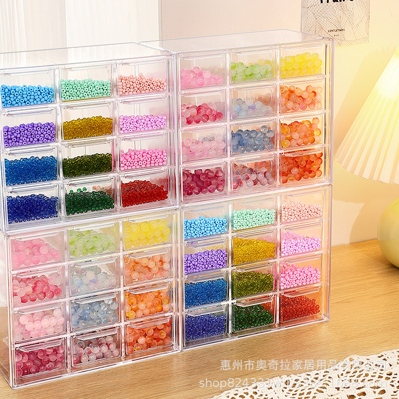 Transparent Divided Beaded Storage Box Ins Style Large Capacity Acrylic Drawer DIY Handmade Rice Bead Jewelry Display Box