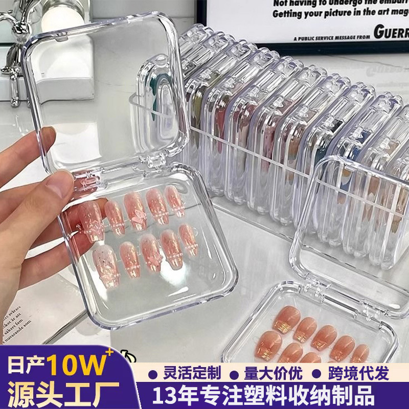 Wearable Nail Storage Box Plastic Flip Cover Transparent Dustproof Wearable Nail Acrylic Display Box Manicure Packaging Box