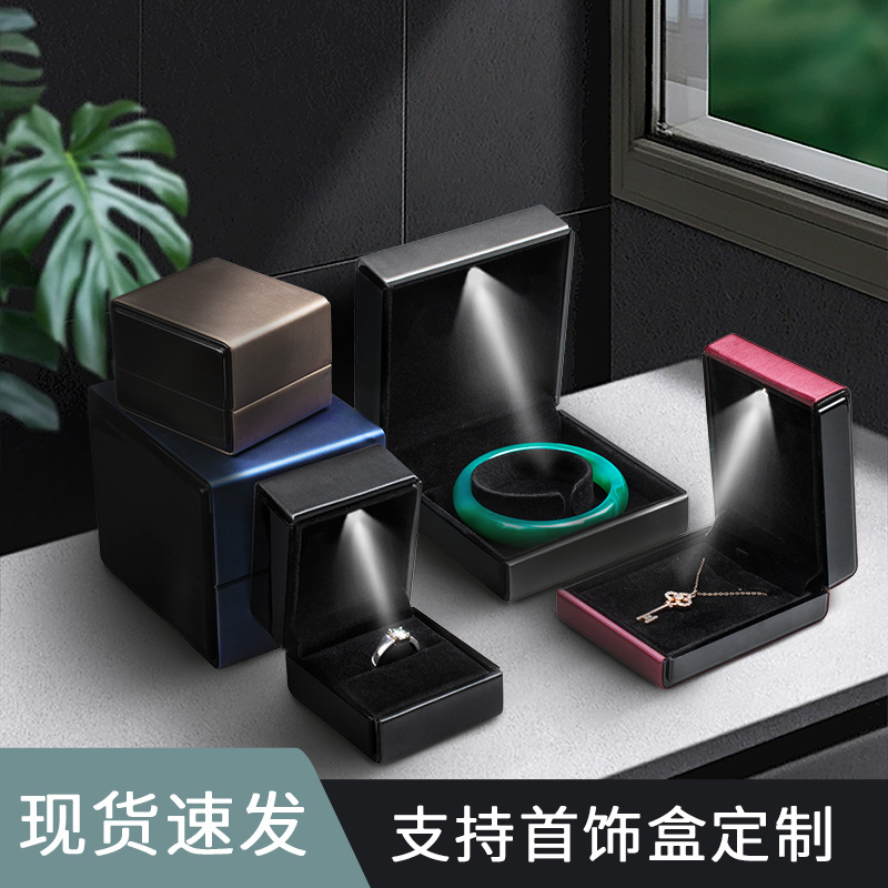 Creative LED Light Jewelry Box Necklace Bracelet Bracelet Packaging Box Proposal Ring Box Brushed Leather Jewelry Box