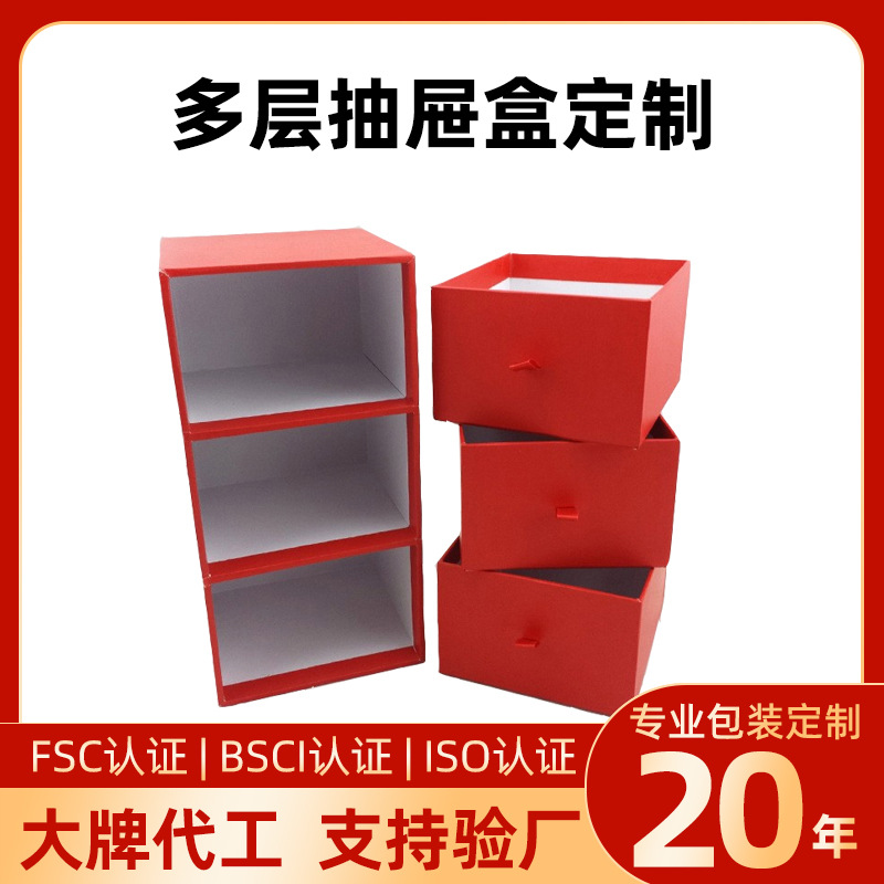 Multi-Layer Drawer Gift Box Red High-End Cosmetic Packaging Box Creative Bright Red Jewelry Box Gift Box Customization