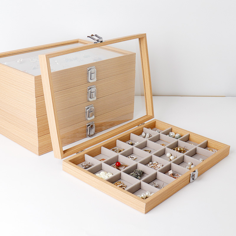 Pear Wood Grain Jewelry Box, Earrings, Earrings, Rings, Necklaces, Bracelets, Jewelry Boxes, Bracelets, Large-Capacity Display Boxes