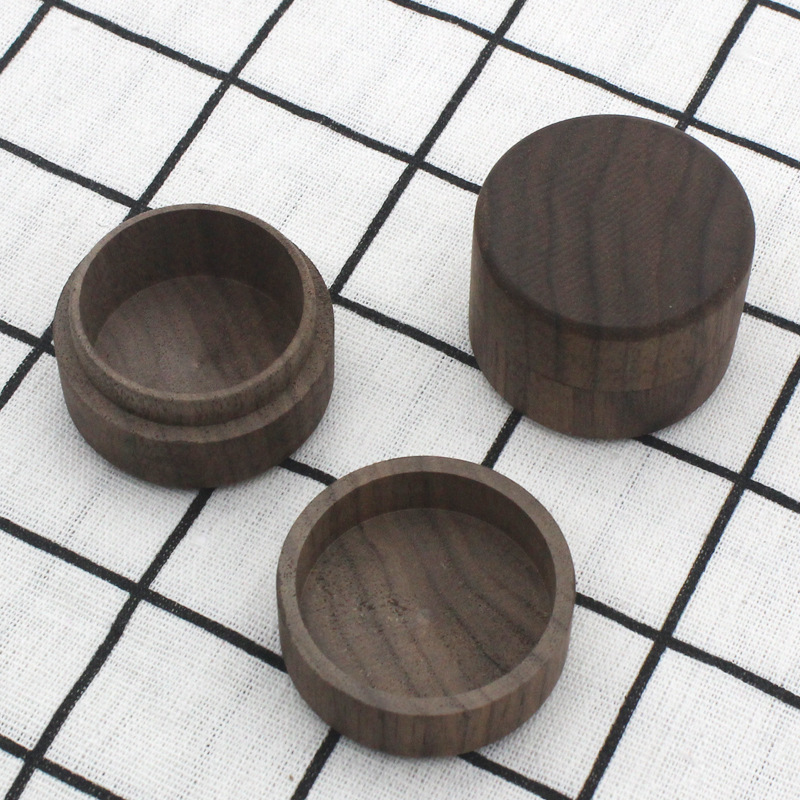 Round Wooden Box Black Walnut Round Ring Box Solid Wood Gift Storage Box Earrings Necklace Packaging Jewelry Box Small Wooden Box