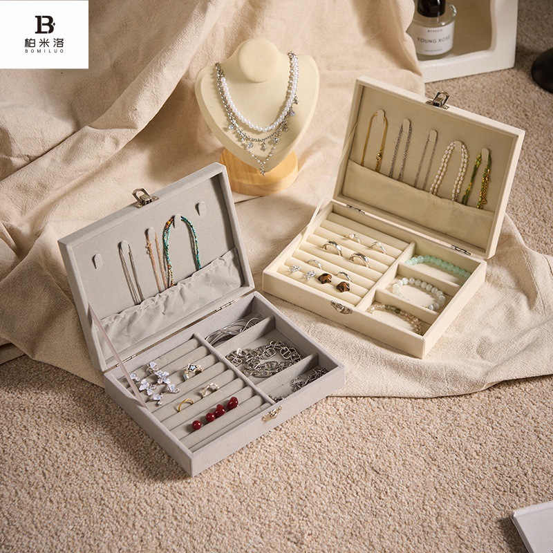 Cross-border direct supply flannel jewelry storage box travel portable jewelry box earrings necklace ring jewelry box wholesale