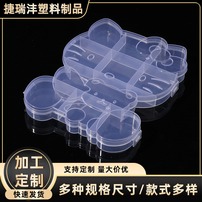 Pink Kt Cat Beaded Small Sundries Storage Box Jewelry Accessories Plastic Box Cute Cartoon Transparent Plastic Box Can Be Customized