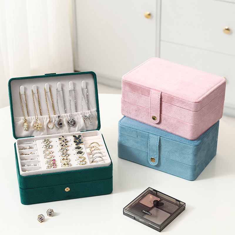 Flannel Double-layer Necklace Ring Jewelry Storage Jewelry Box Earrings Earrings Storage Multifunctional Jewelry Jewelry Box